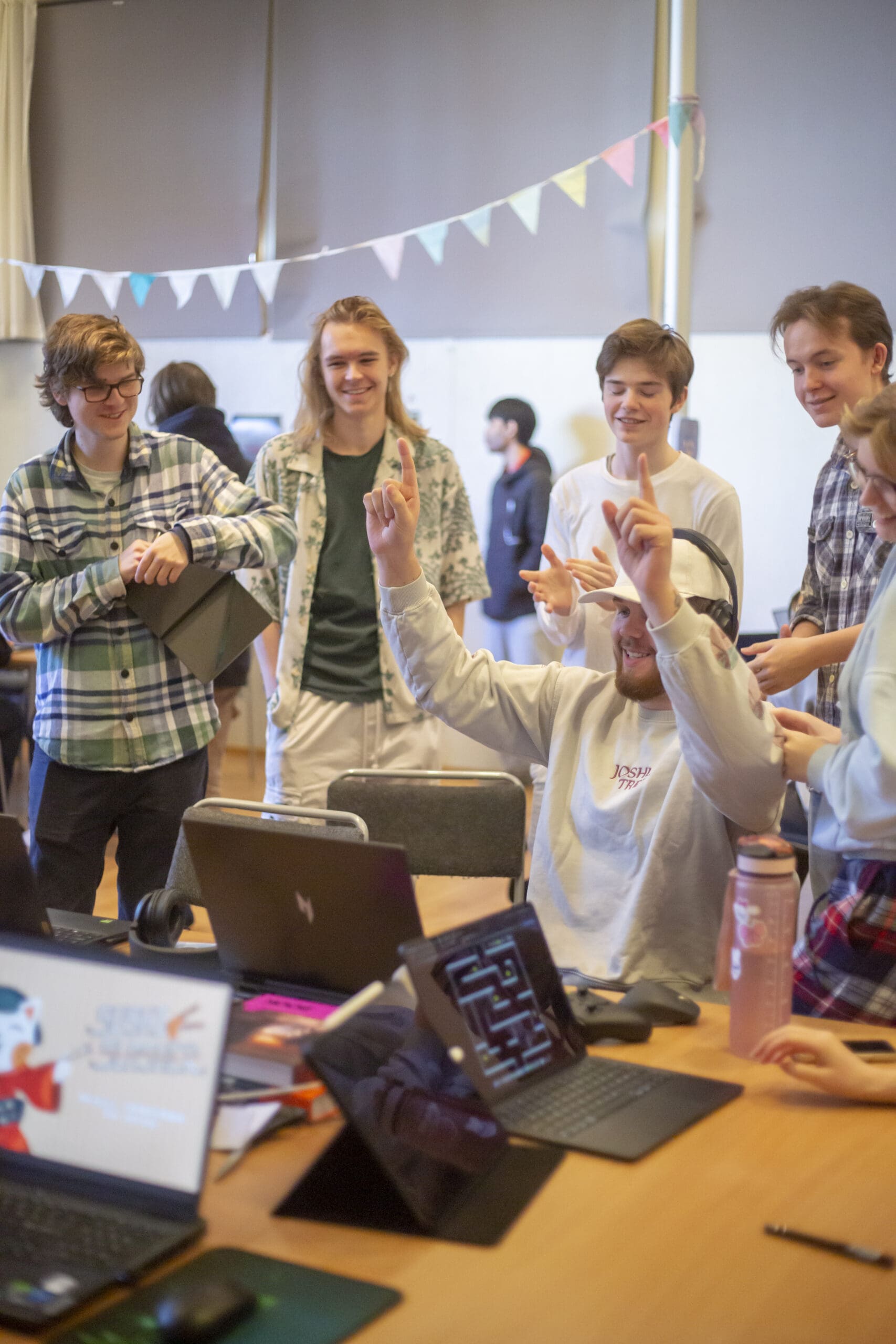 Vi har fokus på samarbeid i både små og store grupper i våre prosjekter. Her får du praktisert alt du lærer om spillproduksjon og design. Vi samarbeider ikke bare innad i klassen, men har flere prosjekter og samarbeid med andre linjer i løpet av året. Game Art produserer kunst og animasjon, Game Music lager atmosfære, lydeffekter og musikk. Sammen skaper vi unike og engasjerende spill.